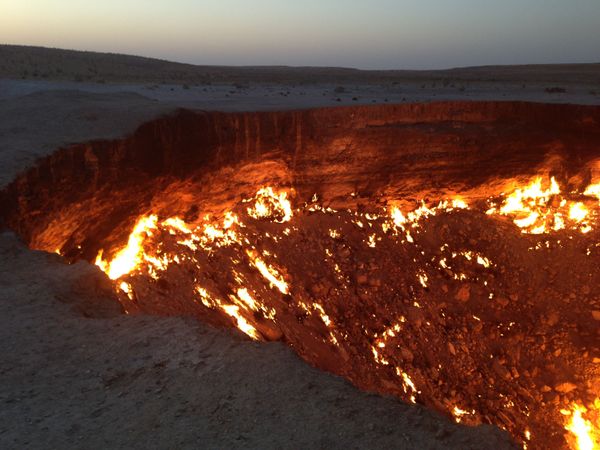 In de middag vertrek je richting Darwaza, één van de spectaculairste plekken van Turkmenistan. Onderweg stop je onder meer in Erbent, een kleine nomadennederzetting te midden van de uitgestrekte Karakum-woestijn. Hier krijg je een uniek inkijkje in het eenvoudige leven van de Turkmeense nomaden, een sterk contrast met het moderne Ashgabat. Tijdens de rit zie je modder- en waterkraters die ontstonden bij gasboringen, maar het hoogtepunt is de brandende gaskrater van Darwaza, die sinds 1971 vlamt. Je overnacht hier in het yurtenkamp. ’s Avonds geniet je van een gezellige barbecue onder de sterren.