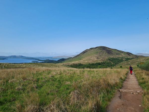 Bossen en wouden openen zich geleidelijk aan om je te trakteren met schitterende zichten op de machtige Ben Lomond. Je klimt omhoog over Conic Hill met op de achtergrond Loch Lomond, het grootste en diepste meer van Schotland. Uiteindelijk daal je af naar Rowardennan.