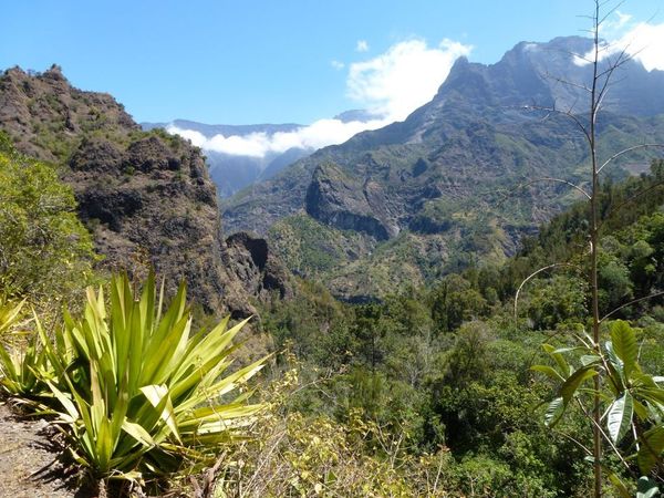 Het pad leidt zuidwaarts in de richting van de indrukwekkende 1200 m-hoge kratermuur die voor je opdoemt. Je staat hier voor het derde keteldal van La Réunion, le Cirque de Cilaos. Maar eerst moet je nog de col de Taïbit (2080 m) over, een verplichte passage die de twee keteldalen met elkaar verbindt en waar je geniet van een indrukwekkend zicht op de cirques Mafate en Cilaos.