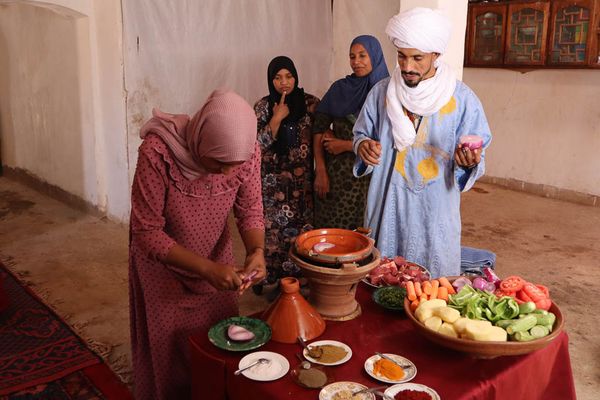Je wordt door de familie van Mohammed gedurende enkele aangename uurtjes ingewijd in hun kooktradities. Je leert er over de geurige kruiden en traditionele gerechten die zo typisch zijn voor de Marokkaanse keuken.
