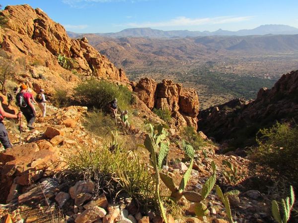 De trekking brengt je langs kleine oases en authentieke Berberdorpen, waarvan de huizen in frisse pasteltinten trapsgewijs tegen de terrasvormige bergflanken zijn gebouwd en gelijkenissen oproepen met de bergdorpen in Jemen. Behalve mannen op (weg naar) de akkers en gesluierde vrouwen in hun mooie, kleurrijke klederdracht, kom je overdag slechts weinig mensen tegen. Het is dan ook des te verrassender om te ervaren hoe het leven in deze verstilde dorpen pas na zonsondergang ontwaakt. Kleine paden brengen je stijgend en dalend van vallei tot vallei, waar cactussen en bloemen kleur brengen in een landschap van aardetinten. Onderweg zie je veel arganbomen, waarvan de vruchten de kostbare arganolie voortbrengen, maar vooral wilde amandelbomen, een belangrijke bron van inkomsten voor de bevolking hier.