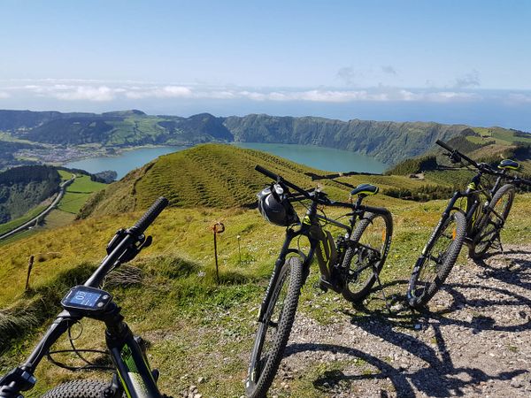 Kies je voor het mountainbiken dan ga je naar het westen van São Miguel, naar een van de allermooiste landschappen van de Azoren-archipel; de gigantische krater van Sete Cidades met de meren Lago Azul en Lago Verde. Je springt op de mountainbike en verkent er de met bloemen omzoomde paden die zich langs de krater en meren slingeren. Op de westelijke oever van het blauwe meer ligt het charmante stadje Sete Cidades, een unieke plek in een prachtige natuurlijke setting. Er zijn verschillende routes mogelijk, eerder vlak of wat uitdagender en al naargelang je conditie. Voor je vertrek wordt afgetoetst welke optie (licht of uitdagender) jullie verkiezen.
