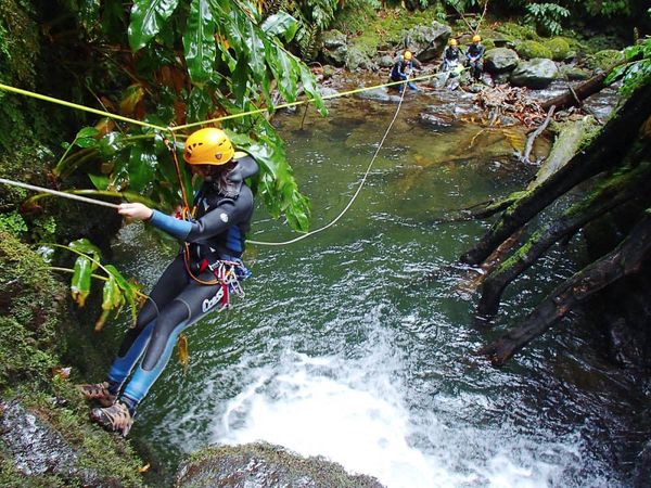 De weelderige en regenwoudachtige canyons bij Ribeira dos Calderões in het noordoosten lenen zich perfect voor een avontuurlijke canyoning. Na de nodige instructies duik je, gekleed in een neopreenpak en voorzien van helm en harnas, het water in. Je klimt langs rotsen en springt en glijdt van kleine watervallen de rivier in. Het is een makkelijke en toegankelijke canyoning, ideaal voor beginners en vanaf 6 jaar (min. lengte 1m20), kunnen zwemmen is geen vereiste.