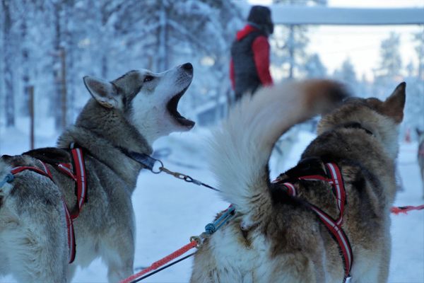 Transfer naar de huskykennel waar je instructies krijgt over het besturen van een hondenslede. Daarna vertrek je op tocht door besneeuwde bossen en over het uitgestrekte Inarimeer (2 personen per slede – geen single mogelijk). Regelmatig wordt er halt gehouden voor foto’s of een warm drankje.